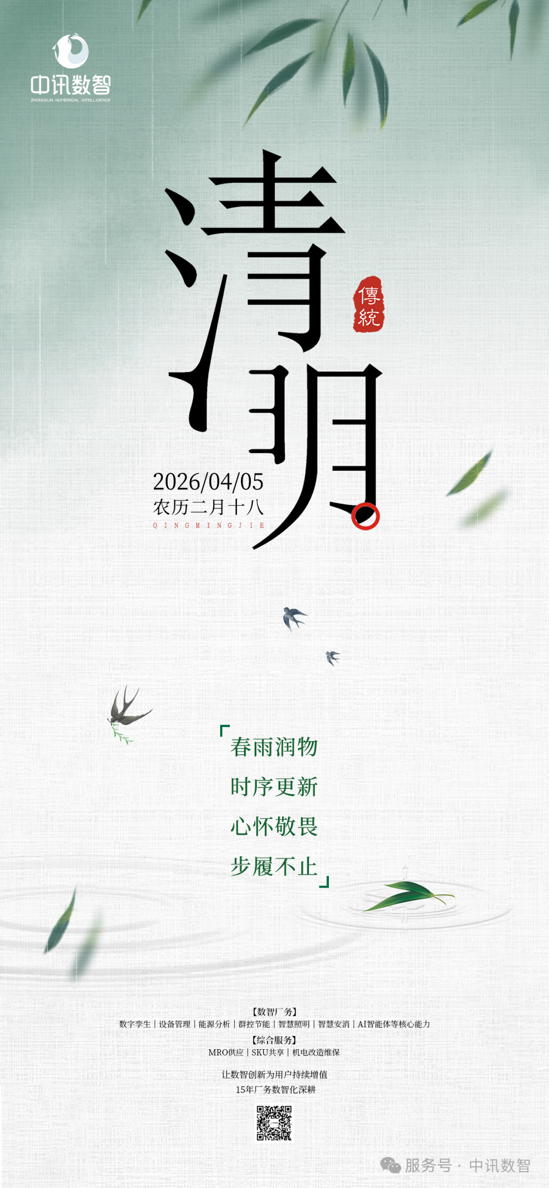 清明|春雨润万物,数智启新程2026年4月10日阅读量: 36春雨润物,时序更新;心怀敬畏,步履不止。清明安康,共赴新程。我们以敬畏之心深耕行业,以奋进之姿笃行致远,十五载坚守不改初心。以数智之力护航厂区平稳运行,以专业服务陪伴企业稳步前行。